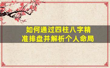 通过四柱八字精准排盘并解析个人命局,需遵循传统命理学的系统性方法。以下是具体步骤和要点: