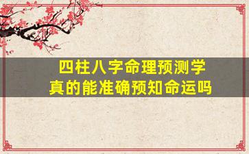 关于四柱八字(又称“八字命理”)是否能准确预知命运的问题,涉及科学、哲学、文化信仰等多个维度,需要从不同角度理性分析: