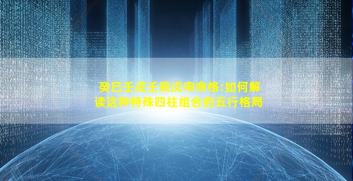 您提供的八字命盘为:癸巳 壬戌 壬辰 戊申(对应四柱为年柱、月柱、日柱、时柱)。以下是针对这一特殊五行组合的逐步解读: