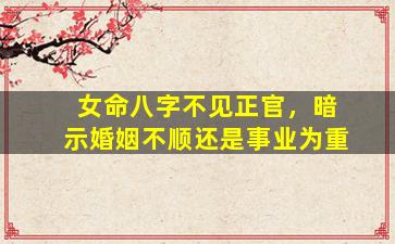 在八字命理中,"女命八字不见正官"确实常被作为分析婚姻和事业的一个参考点,但需注意其解读需结合整体命局,不可一概而论。以下是具体分析: