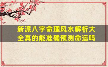 关于“新派八字命理风水解析大全”或其他命理风水理论是否能准确预测命运的问题,需要从科学、文化、心理学等多个角度理性看待: