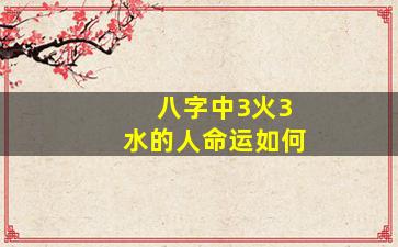 仅凭“3火3水”无法定论命运吉凶,需结合八字全盘分析(如十神、格局、大运等)。建议提供完整八字或咨询专业命理师,以获得更精准的解读。