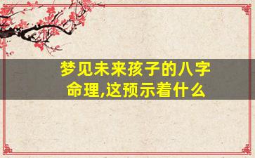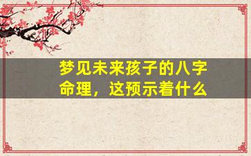 梦见未来孩子的八字命理,在传统文化和玄学视角中通常被视为一种象征或隐喻,而非字面意义上的预知。这类梦境可能反映潜意识的某些信息,具体解读可以从以下几个角度考虑: