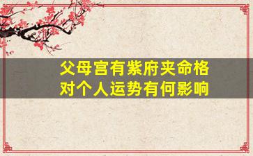 在紫微斗数中,“父母宫有紫府夹命格”是一种特殊的格局,主要涉及命宫被紫微星和天府星夹辅的情况。这一格局对个人运势的影响需结合星曜的庙旺落陷、四化(化禄、化权、化科、化忌)以及其他辅佐煞曜的综合作用来分析。以下是其可能的象征意义和影响: