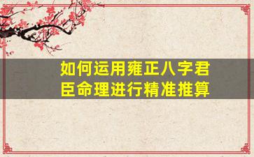 运用雍正八字(即雍正皇帝的出生时辰八字)进行君臣命理推算,属于传统命理学中的“君臣格局”分析方法,主要用于推断个人与权威、领导、上级的互动关系,或自身在权力体系中的运势。以下是具体方法和注意事项: