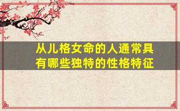“从儿格”是八字命理中的一种特殊格局,主要特征是命局中食神、伤官(代表子女、才华、自由等)能量极强,且日主(命主自身)弱而从之。对于女命而言,这一格局往往赋予其鲜明的性格特征,以下是一些典型的体现: