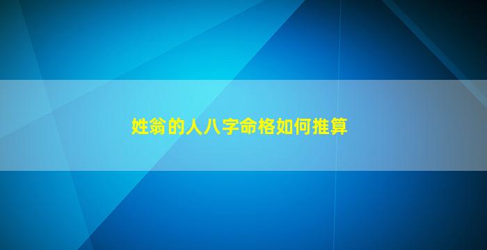 推算姓“翁”者的八字命格,需结合传统命理学方法,以出生时间为核心,姓氏本身对命局的影响较小,但可作为辅助参考。以下是系统化的推算步骤: