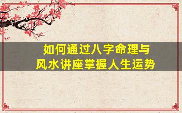 通过八字命理与风水讲座掌握人生运势,需要系统学习理论、结合实践,并注重个人与环境的关系。以下是具体步骤和建议: