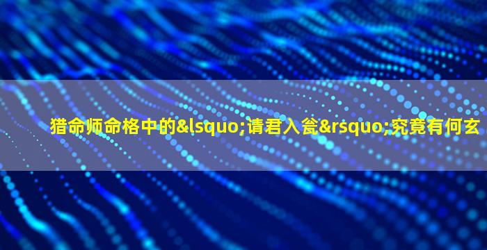 关于《猎命师传奇》中“请君入瓮”命格的玄机,结合九把刀的设定与命格体系的深层逻辑,可以解析如下: