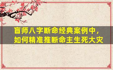 在盲派八字命理体系中,精准推断生死大灾需要综合运用多重命理逻辑,且需严格遵循"有灾必有命理引动"的原则。以下是盲派经典断命技法中的核心方法论,结合案例说明: