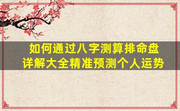 通过八字(四柱命理)测算个人运势是中国传统命理学的核心方法之一,其核心是通过分析出生时的年、月、日、时四柱的天干地支组合,结合五行生克、十神关系、大运流年等要素,综合推断人的性格、事业、婚姻、健康等运势。以下是系统化的步骤和详解:
