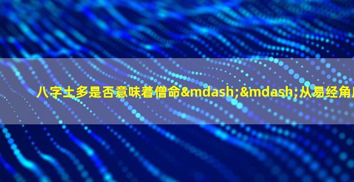 从《易经》和命理学的角度来看,“八字土多是否意味着僧命”这一问题需要结合五行生克、十神配置及命局整体结构综合分析,不可单一而论。以下是具体探讨:
