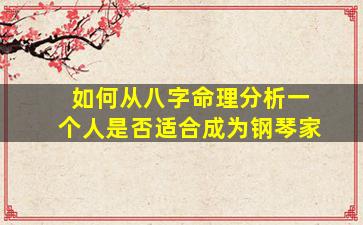 从八字命理的角度分析一个人是否适合成为钢琴家,主要需结合五行、十神、命局结构以及大运流年等要素,尤其是与艺术才华、手指灵活性、音乐感知力相关的命理特征。以下是具体的分析思路: