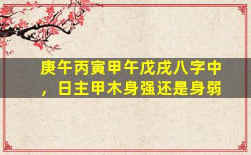 要判断八字“庚午 丙寅 甲午 戊戌”中日主甲木的强弱,需综合分析得令、得地、得势及五行生克关系: