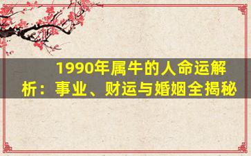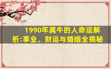 关于1990年属牛人的命运解析,需结合中国传统生肖文化、五行命理及现实生活逻辑综合看待。以下从事业、财运、婚姻三个方面进行解析,供参考: