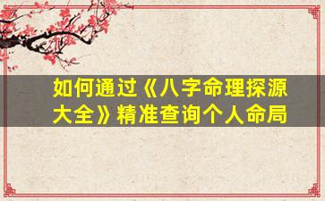 通过《八字命理探源大全》精准查询个人命局,需要系统化的步骤和对命理学基础知识的掌握。以下是具体操作指南: