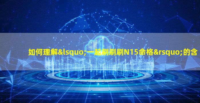 “一起刷刷刷N15命格”这一表述属于网络流行文化中的特殊用语,结合了游戏术语、社交互动和梗文化的特点。具体含义可以从以下几个角度理解: