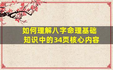 理解八字命理基础知识中的“34页核心内容”(可能是某本特定书籍或教材的章节),需要结合八字学的核心框架进行系统拆解。以下从关键概念、逻辑脉络和实际应用三个层面为你梳理:
