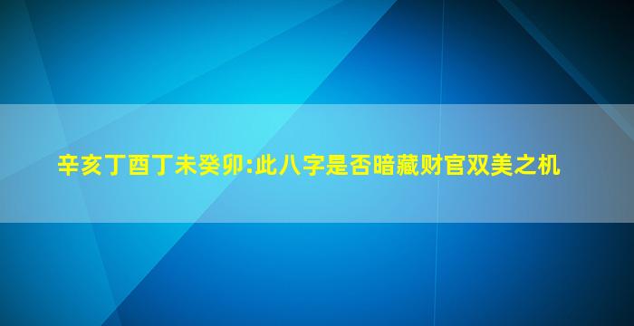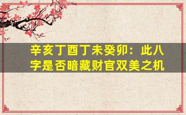 在八字命理中,"财官双美"通常指正财、正官星得位且配合得当,形成富贵双全的格局。针对您提供的八字 辛亥 丁酉 丁未 癸卯 ,我们从五行生克和十神角度分析如下: