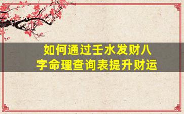 在八字命理中,壬水代表阳水(如江河湖海),其特性是流动、灵活、适应力强。若想通过“壬水发财八字命理查询表”或类似工具提升财运,需结合个人八字整体格局和五行生克原理。以下是具体方法和步骤: