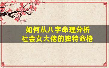 从八字命理分析社会女大佬的命格,需结合其事业成就、性格特质及人生际遇,通过五行生克、十神组合、特殊格局等角度综合研判。以下是具体分析框架和典型特征: