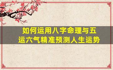 运用八字命理与五运六气进行人生运势预测,是传统命理学与中医气象学的结合,需系统分析先天命局与后天时空变化的影响。以下是关键步骤和逻辑框架:
