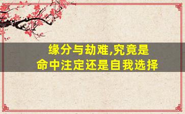 关于"缘分与劫难"是命中注定还是自我选择的探讨,本质上涉及哲学、心理学、宗教等多个维度的思考。这个问题没有标准答案,但我们可以从不同视角来理解其中的辩证关系:
