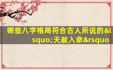 :符合“天赦入命”的八字,核心是日柱为当季天赦日(戊寅、甲午、戊申、甲子),且无严重刑冲,若再得吉神相助,则格局更贵。具体需结合十神、五行生克综合判断。