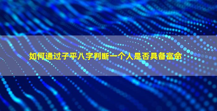 通过子平八字(四柱命理)判断一个人是否具备“富命”,需综合分析命局中的财星、食伤、官杀、印星等十神配置,以及五行生克、格局清浊、用神得力等因素。以下是具体方法和核心要点:
