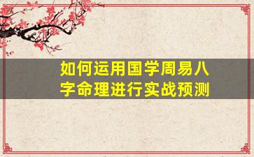 运用国学周易与八字命理进行实战预测,需结合理论体系与实践经验,形成系统化的分析逻辑。以下为具体方法与步骤,分为周易占卜和八字命理两部分说明: