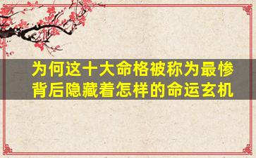 关于“十大最惨命格”的说法,其实并非传统命理学的正统分类,而是民间或网络文化中对某些命理特征的戏剧化演绎。这些说法往往结合了八字、紫微斗数等命理体系中的特殊格局,并赋予其夸张的悲剧色彩。但需注意,命运从来不是单一格局决定的,后天环境、个人选择与修行的影响更为关键。以下是这些命格被赋予“悲惨”标签的可能原因和隐藏的玄机: