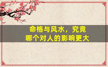 关于命格与风水对人影响的讨论,涉及中国传统文化中的命理学与堪舆学,两者既有联系又有区别。要比较其影响力,需从各自的本质、作用机制以及相互作用来分析: