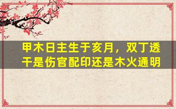 关于甲木日主生于亥月且双丁透干的命局,是"伤官配印"还是"木火通明",需要结合具体配置综合分析: