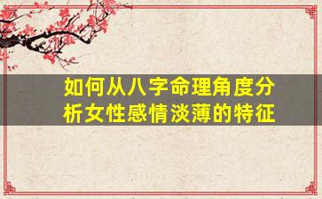 从八字命理角度分析女性感情淡薄的特征,通常需要结合命局中的五行生克、十神配置、宫位关系以及特殊组合来综合判断。以下是常见的命理特征和分析思路: