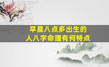 在八字命理中,早晨八点多出生的人通常属于辰时(7:00 9:00),对应的地支为辰土。这一时辰的八字命理特点需结合年、月、日的干支综合分析,但辰时本身有一些共性特征,以下是具体分析: