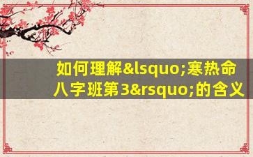 “寒热命八字班第3”更可能是现代语境下的非标准表述,需结合具体背景理解。若您能提供更多上下文(如出处、使用场景),或可进一步精准解析。