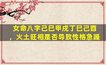 此八字火土过旺确易导致性格急躁,但伤官生财也赋予聪明才智。关键在于自我觉察与五行调和,将急躁转化为高效行动力。