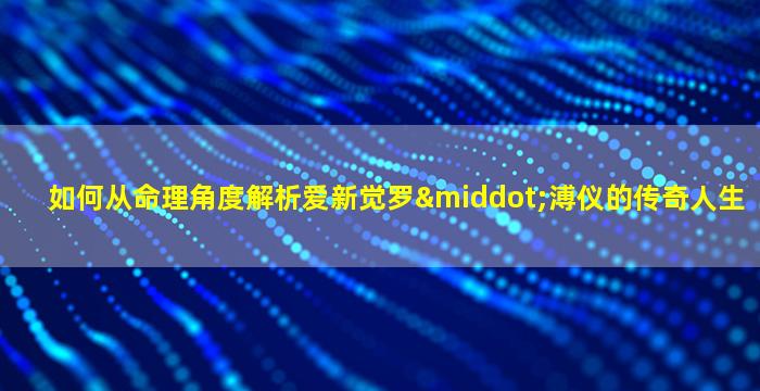 从传统命理学(如八字、紫微斗数等)角度解析爱新觉罗·溥仪的传奇人生,需结合其出生时间、历史背景及个人经历进行综合推断。以下为基于公开史料(溥仪生于1906年2月7日,农历丙午年正月十四日,时辰不详,按子时推算)的初步分析: