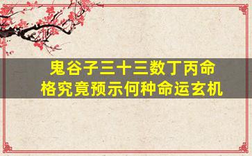 关于“鬼谷子三十三数丁丙命格”的解读,需结合中国传统命理学中的鬼谷子数术、天干五行及数理吉凶来分析。这一命格在民间流传的版本中并非主流体系,可能属于地方或门派传承的特定算法,因此以下分析基于命理学普遍原理,供参考: