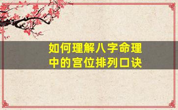 八字命理中的宫位排列是命盘分析的基础之一,通过口诀可以帮助记忆宫位与六亲、人生阶段的对应关系。以下是关键要点和口诀的解析: