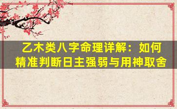 在八字命理中,乙木作为十天干之一,代表阴柔之木,如花草藤蔓,其命理特性与甲木的参天大树截然不同。精准判断乙木日主的强弱及用神取舍,需从以下几个核心维度综合分析: