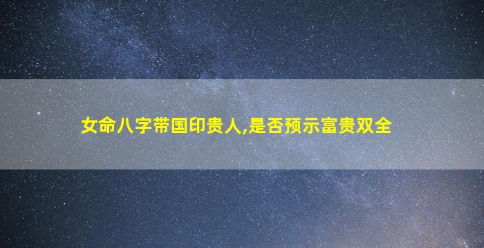 在八字命理中,国印贵人是一种吉神,象征权力、地位和官方认可。对于“女命八字带国印贵人是否预示富贵双全”的问题,需结合命局整体分析,不可单凭一神煞定论。以下是关键要点: