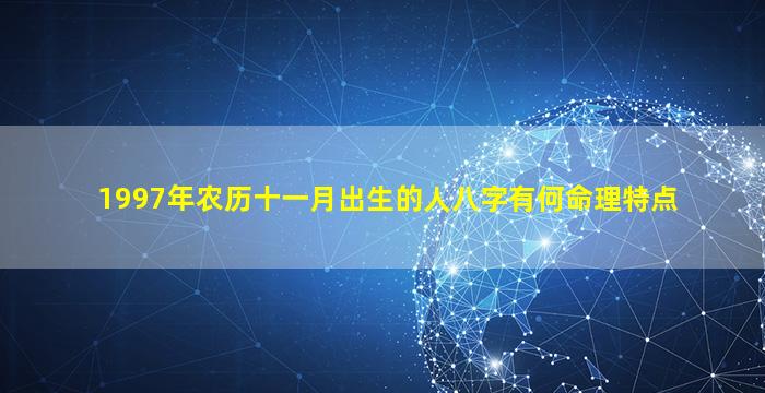 根据1997年农历十一月(对应公历1997年11月30日—1997年12月29日)出生者的八字命理,其核心特点如下(以年柱、月柱为主,默认男性排大运,具体需结合出生时辰调整):