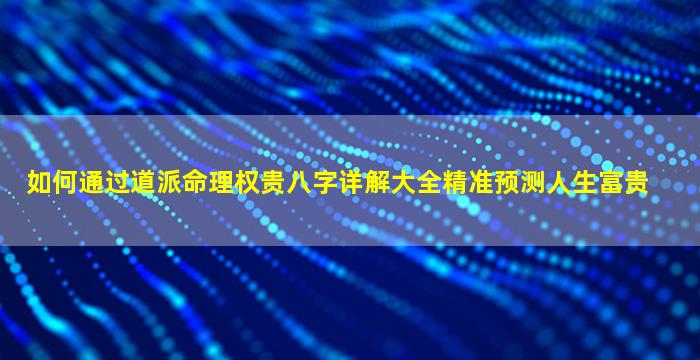 “道派命理权贵八字详解大全”这类命理学体系,通常以传统八字(四柱预测术)为基础,结合道教阴阳五行理论,分析个人命运中的富贵层次。以下是从专业角度出发的精准预测方法框架及注意事项: