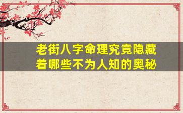 关于“老街八字命理”的奥秘,这一话题融合了传统文化、民俗信仰和现代人对命运的探索欲望。以下从历史背景、理论逻辑、争议点及文化意义等方面展开分析,供您参考: