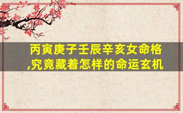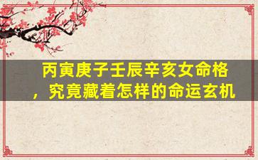 根据您提供的八字“丙寅 庚子 壬辰 辛亥”,现从专业角度进行命理分析如下: