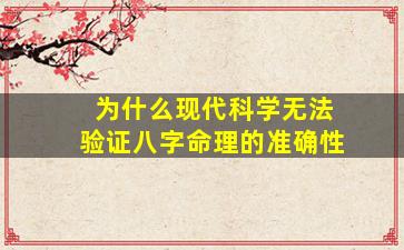 关于现代科学无法验证八字命理准确性的问题,可以从以下几个角度进行客观分析: