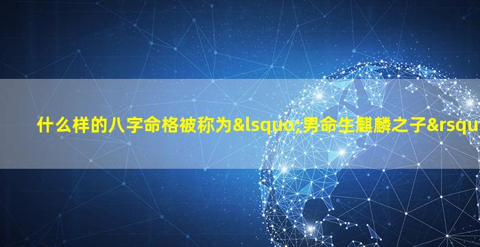在传统八字命理中,“男命生麒麟之子”是一种象征子孙显贵、后代非凡的命格说法,通常与以下特征相关: