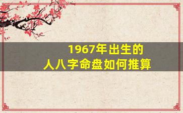 推算八字命盘需要根据个人的出生年、月、日、时(精确到小时),结合中国传统的干支历法和五行理论。以下是1967年出生的人推算八字命盘的详细步骤和示例: