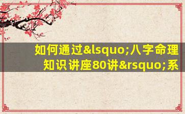 要通过“八字命理知识讲座80讲”系统掌握命理精髓,建议分阶段、有步骤地学习,并结合实践与反思。以下是一个系统的学习路径: